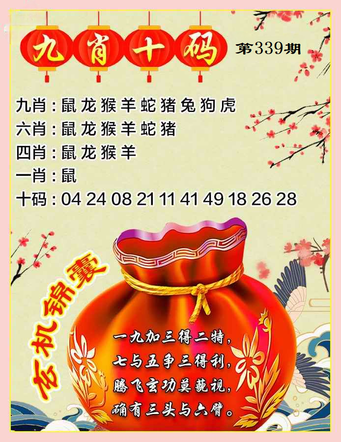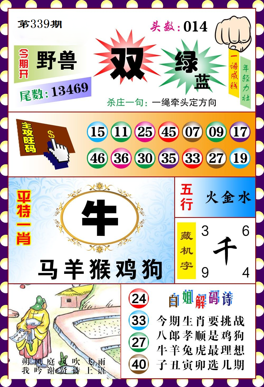 第339期------开鸡33准 【杀一肖:兔】【杀一尾:9】【杀一合:3】 |