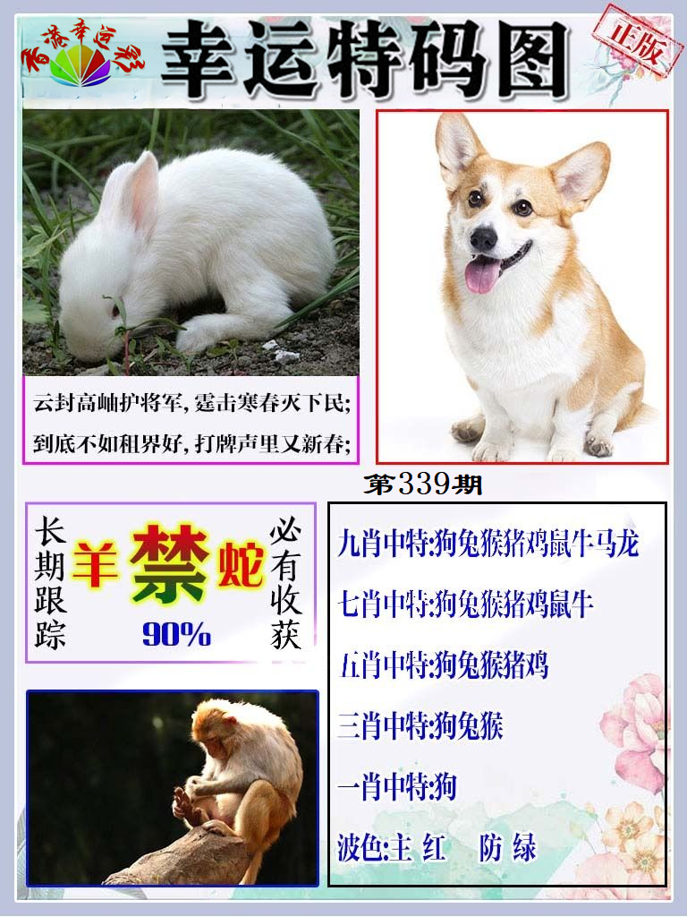 | 第339期 【兔-羊-猴-鸡-蛇-狗】 准三肖 |