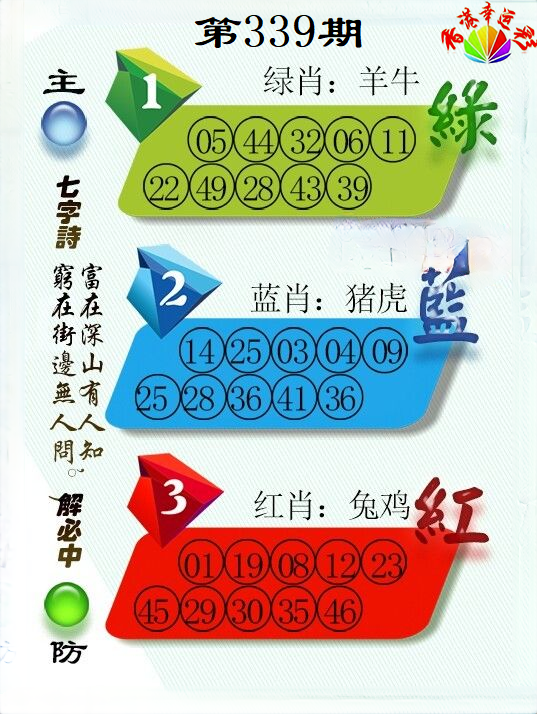 第332期~第334期(三期计划) 牛狗虎蛇羊马 【332:牛17】【333:猪07】【334:龙14】 |