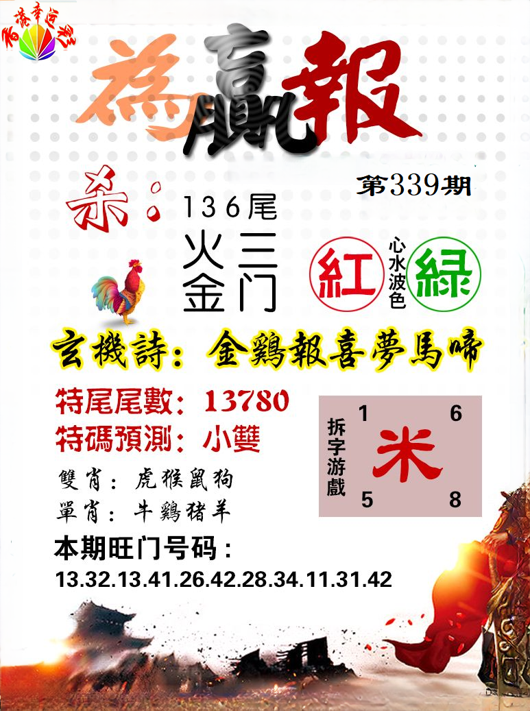 | 第337期 【鼠-虎-兔-狗-蛇-鸡】 准二肖 |